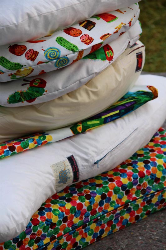 Hier finden Sie individuelle Kissenformen für Kleinkinder, Jugendliche und Erwachsene. Sie sind auf gezielte Unterstützung bei der Lagerung eines pflegebedürftigen Menschen abgestimmt. (Beispiel: „Ohrhörnchen“ zur Druckentlastung der Ohren; Zweiteiliges Kissenset für die Unterstützung in der 30°-Position/ Dekubitusprophylaxe; Fußstütze aus Schaumstoff für die Unterlagerung der Füße) Die Verwendungsmöglichkeiten werden mit Hilfe einer Atelier-Holzfigur veranschaulicht.
